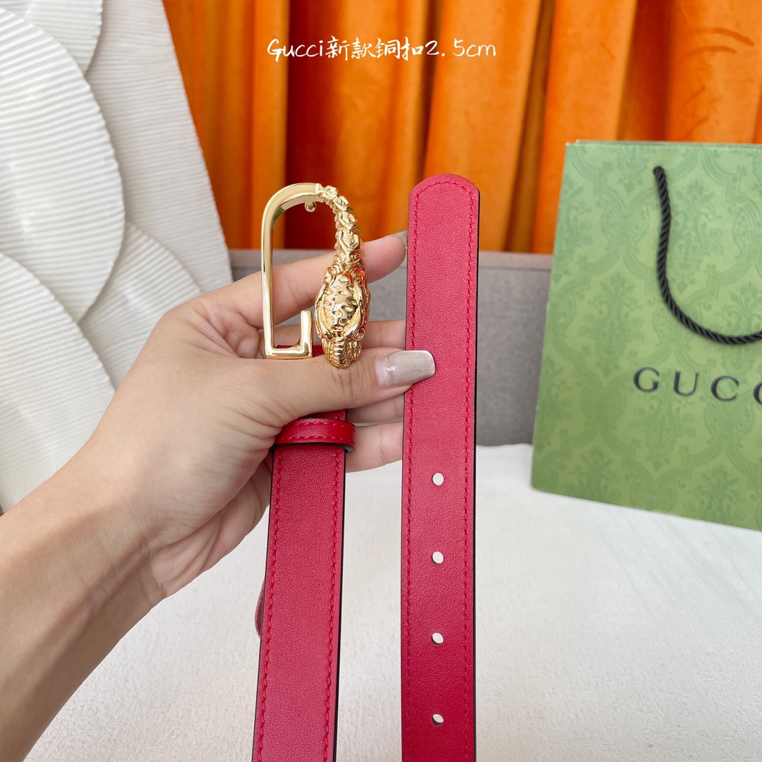 Gucci Women’s G Buckle Belt In Pink/Red/Black Calfskin With Gold Hardware 25mm