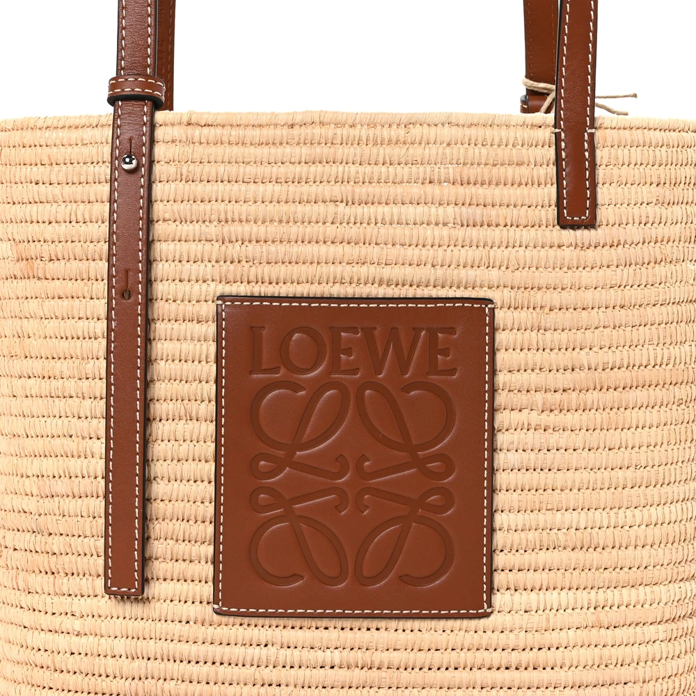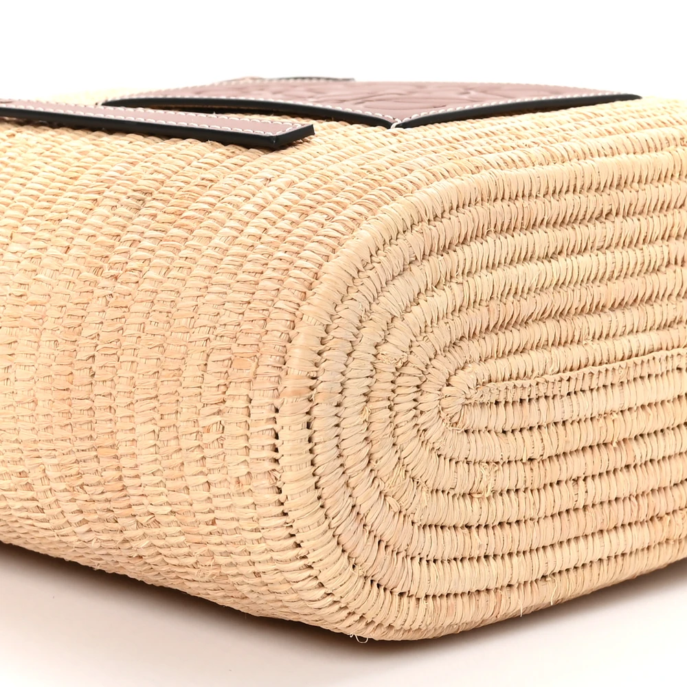 Loewe Square Basket Tote Bag Small Natural/Pecan Raffia & Calfskin Leather