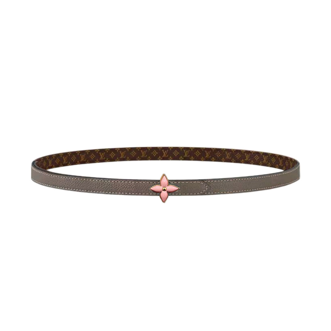 Louis Vuitton Women’s Mini Flowergram Reversible Belt In Grey Calfskin And Monogram Canvas With Gold/Silver/Pink/Black Hardware 15mm