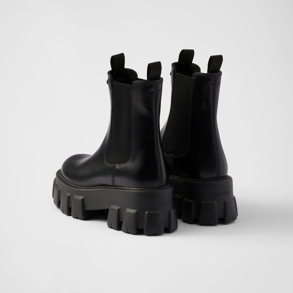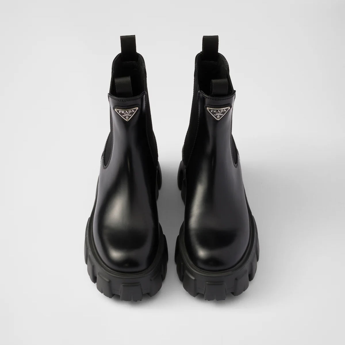 PRADA Black Monolith shiny leather Chelsea boots