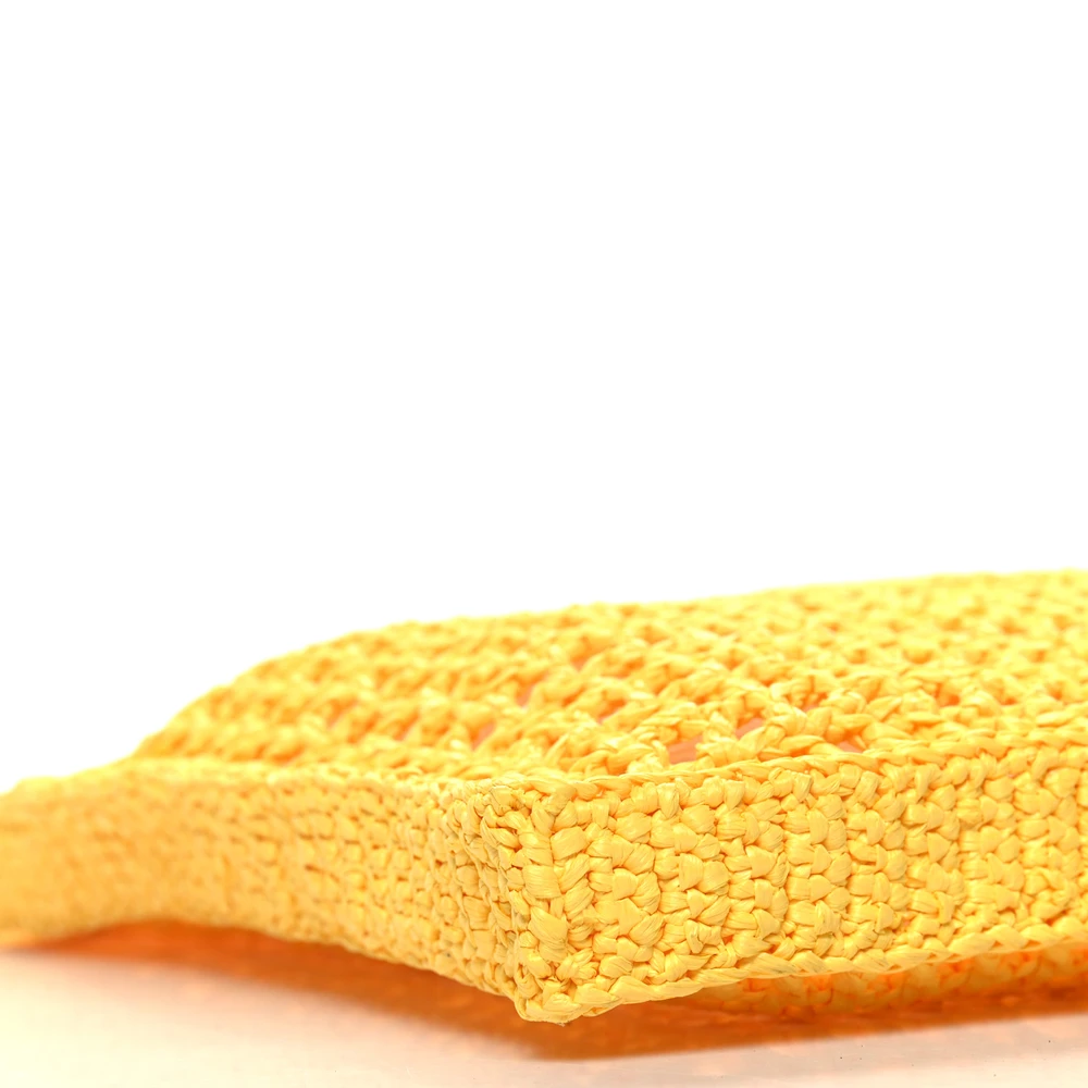 Prada Large Effect Crochet Logo Embroidered Tote Bag Giallo Yarn Raffia