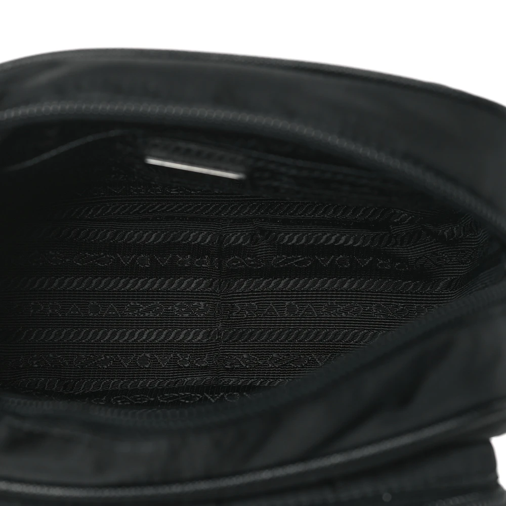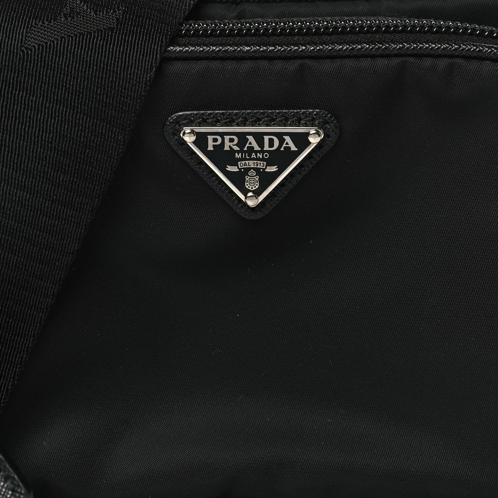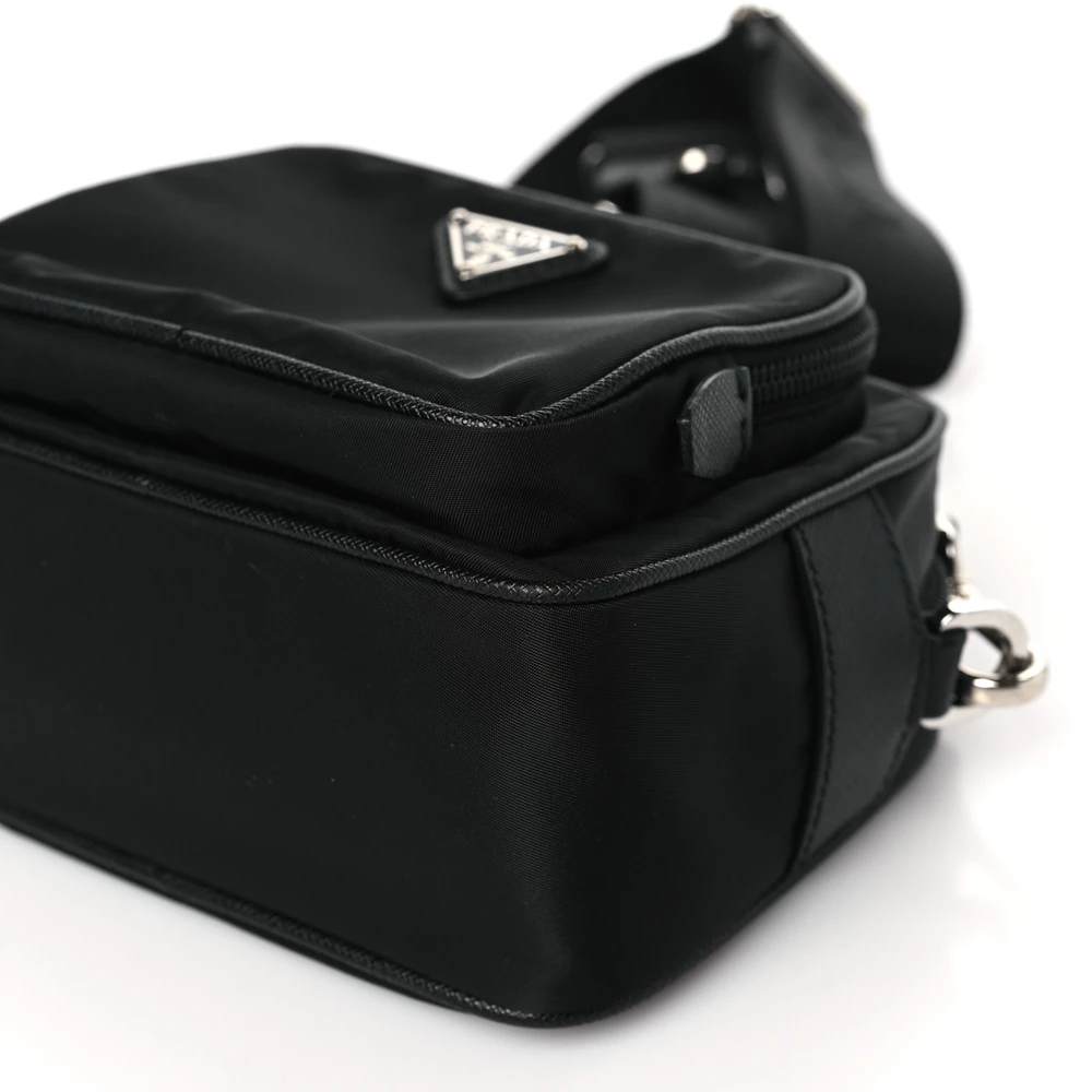 Prada Medium Brique Crossbody Messenger Bag Black Tessuto & Saffiano Leather Silver Hardware