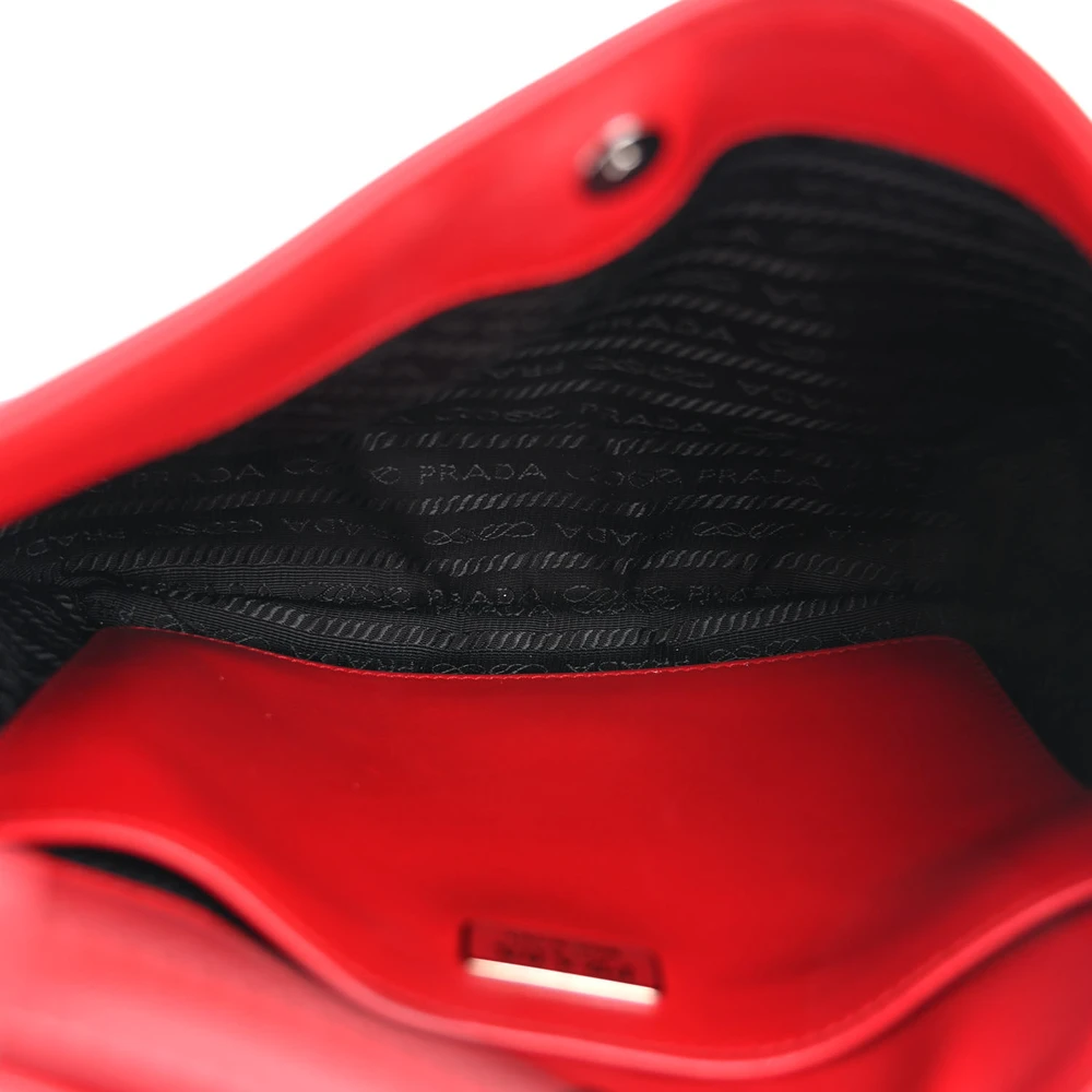 Prada Medium Cleo Shoulder Bag Scarlatto/Black Spazzolato Leather Silver Hardware