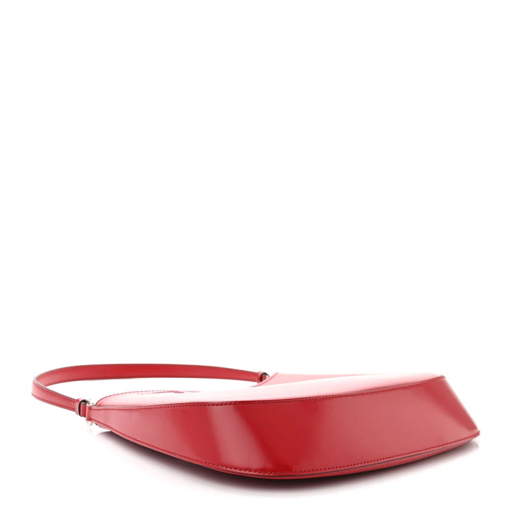 This Prada Medium Cleo Shoulder Bag in Red is crafted from spazzolato leather. Silver hardware enhances its elegant design. Spacious and versatile for daily essentials. Comfortable strap for effortless carrying. Perfect for casual or formal occasions. A timeless and chic accessory.