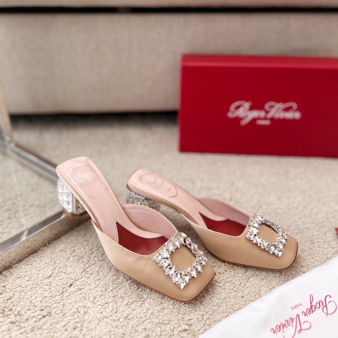 Roger Vivier Jewel Heels Sandals In Green/Pink/Blue/Black/Beige Satin With Crystal Buckle (Heel Height 5cm)