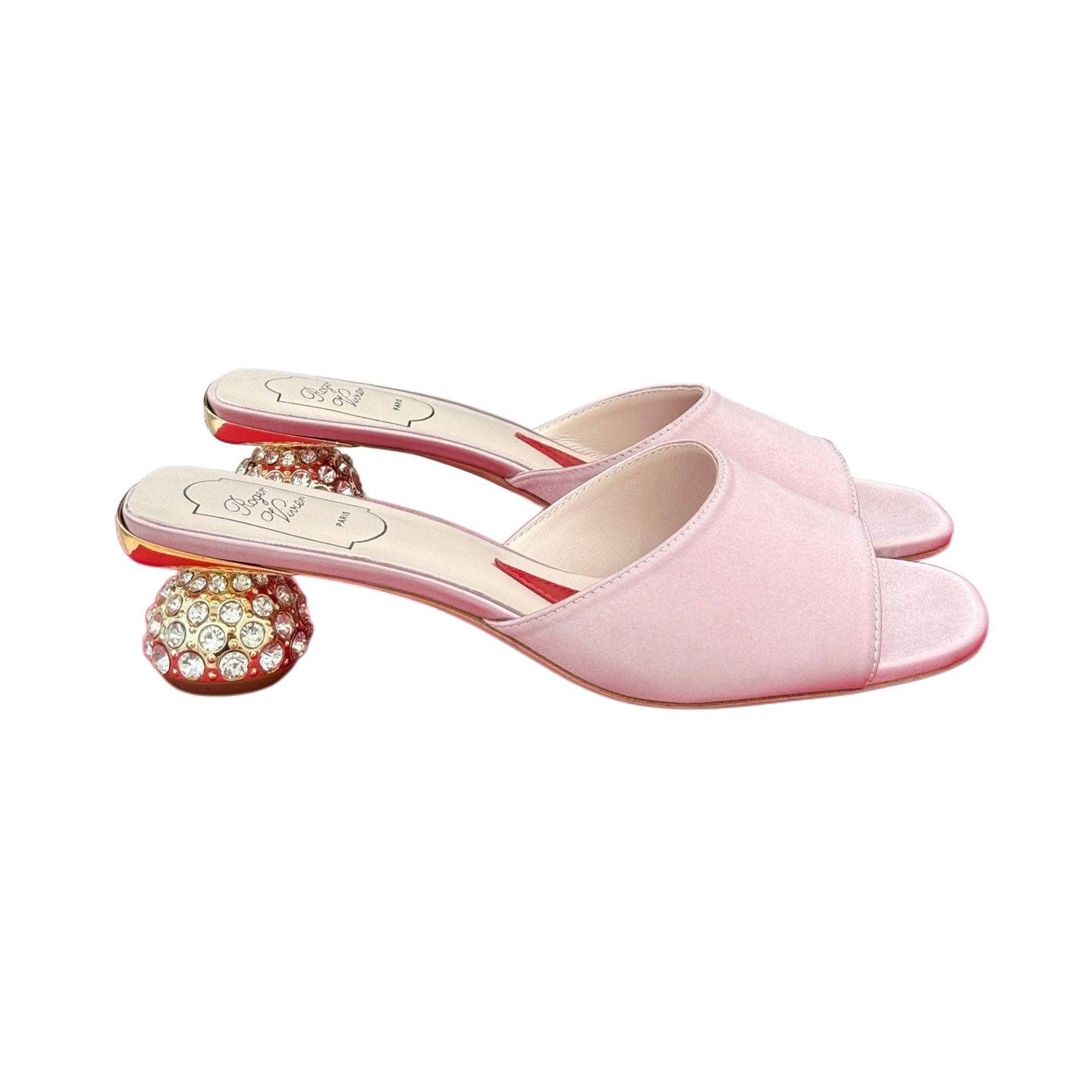 Roger Vivier Mules Sandals In Black/White/Pink Satin Crystal Heels (Heel Height 4cm)