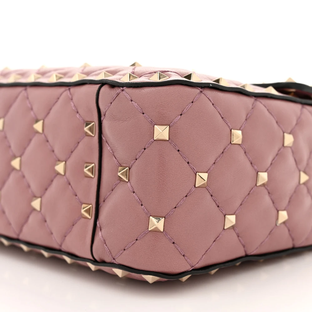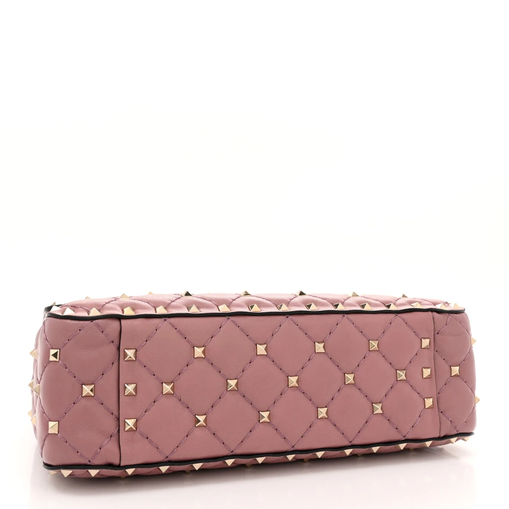 Valentino Garavani Medium Rockstud Spike Shoulder Bag Antique Rose Lambskin Leather Light Gold Hardware