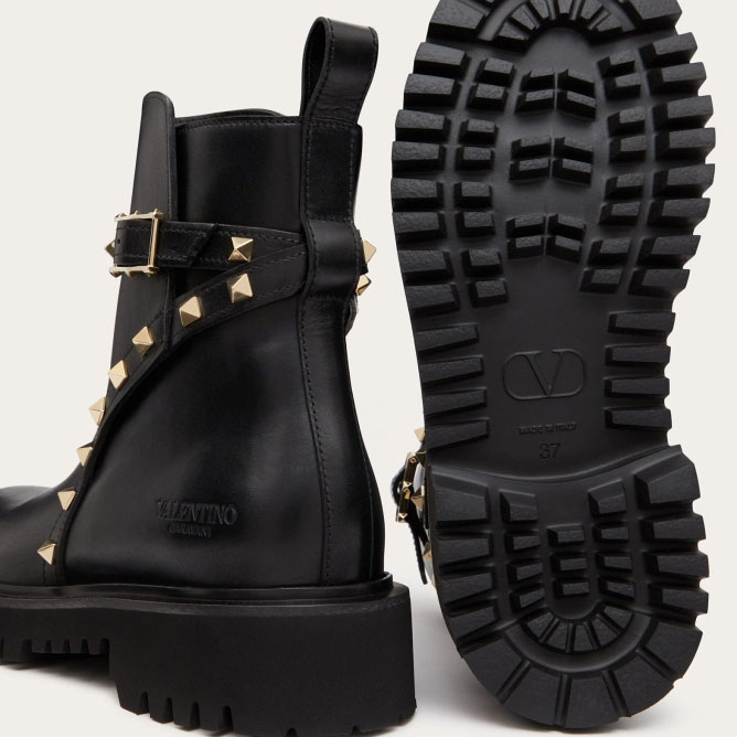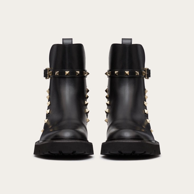 VALENTINO ROCKSTUD Calf leather ankle boots (heel height 4cm)